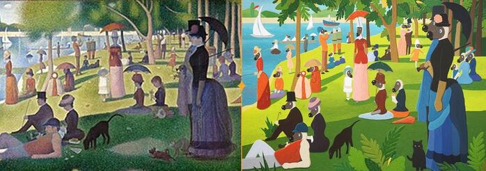 2021년 9월 한 경매에서 그림값이 폭등해서 사람들의 시선을 끈 작품이 있었어. <모리셔스섬의 일요일 오후>라는 작품이었지. 신인상주의 미술을 대표하는 프랑스 화가 조르주 쇠라의 <그랑드자트섬의 일요일 오후>를 오마주한 이 작품의 그림값 폭등은 아무도 예측하지 못한 일이었다고 해.