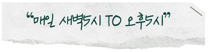 "새벽이 너무 좋아요. 아무런 연락도 안 오고 진짜 온전히 제 일에 집중할 수 있는 시간인 것 같거든요, 새벽이. 그렇다고 밤새고 싶지는 않고요. 그 시간이 뭔가... 집중이 가장 잘되는 시간을 작업에 투자하는 게 어떻게 보면 제 직업에 대한 존중이랄까 예의 같은 것들?"