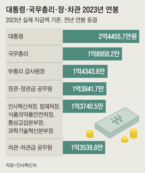 尹대통령 연봉 2억 4500만원 ‘동결’... 8·9급 3~5% 인상
