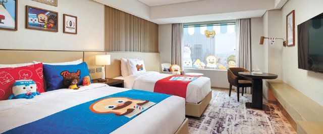 지난해 5월 저층(18층 이하)을 리뉴얼하는 2차 리노베이션을 했다. 일반 객실을 포함해 △캐릭터 룸 △레지덴셜 룸 △온돌스위트 룸 등 고객의 기호에 맞는 244실의 신규 객실로 눈길을 끌었다. 아이들이 좋아해 가족 단위 투숙객들이 선호하는 캐릭터 룸이 30실에서 52실로 대폭 늘어났다. 1차 리노베이션 때 만든 브레드이발소 룸(22실)에 이어 로티로리 룸(10실)과 카카오프렌즈 룸(20실)이 추가됐다. 롯데호텔 관계자는 “캐릭터 룸은 7개월 동안 투숙 비율이 90%를 넘어섰다”며 “특히 롯데월드 조망이 가능한 카카오프렌즈 룸은 가장 먼저 마감된다”고 했다.
