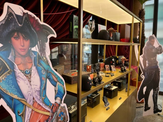 6일 '검은녹용' 팝업스토어 내 전시대를 검은사막 클래스 '커세어'와 '하사신'이 지키고 있다. /사진=펄어비스 |