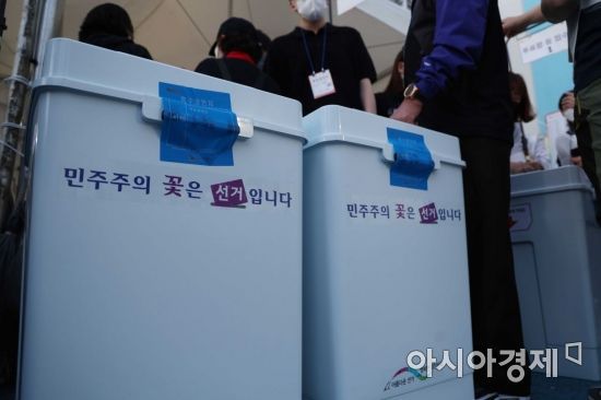 제8회 전국동시지방선거일인 2022년 6월1일 서울 서대문구 루마버텍스에 마련된 남가좌제2동 제2투표소에서 유권자들이 소중한 한 표를 행사하고 있다. /문호남 기자 munonam@ |