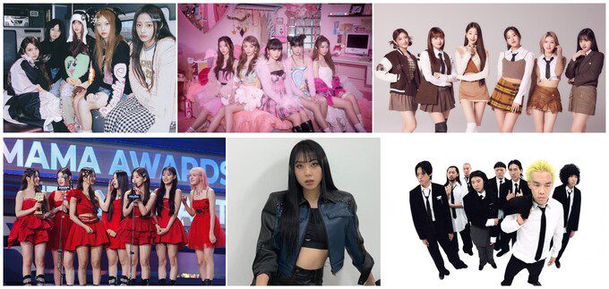 (왼쪽 위부터 시계방향으로) 뉴진스(NewJeans), 르세라핌(LE SSERAFIM), 아이브(IVE), 바밍 타이거(Balming Tiger), 이영지, 엔믹스. 뉴시스 |
