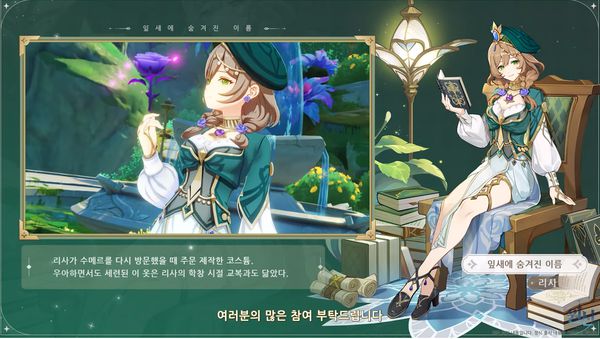 파티 도전 이벤트 '장미가 다시 필 무렵'도 오픈된다. 이는 3개 파티를 편성해 연속 3라운드의 전투를 치르는 방식이다. 파티 편성 시 '공유 슬롯'에 배치한 캐릭터는 여러 라운드에 출전할 수도 있고 버프 효과도 추가로 얻는다. 이번 이벤트의 모든 스테이지를 완료하고 목표 점수를 달성하면 리사의 새 코스튬 '잎새에 숨겨진 이름'을 보상으로 획득할 수 있다.