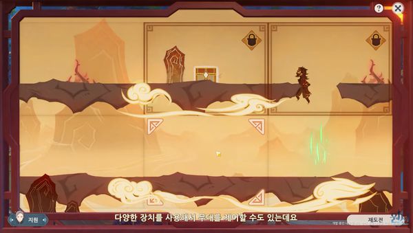 또 리월의 전통 예술 종이 연극이 이벤트 콘텐츠로 개방돼 이를 체험할 수 있다. 이는 고정되지 않은 종이 장막을 움직여 등장인물이 무대 위 함정을 피할 수 있도록 이동 경로를 바꾸며 목표 지점으로 유도하는 방식으로 진행된다. 다양한 장치를 활용하는 퍼즐 요소가 구현됐으며 실패할 경우 도움을 받아 난이도를 낮추는 것도 지원된다.