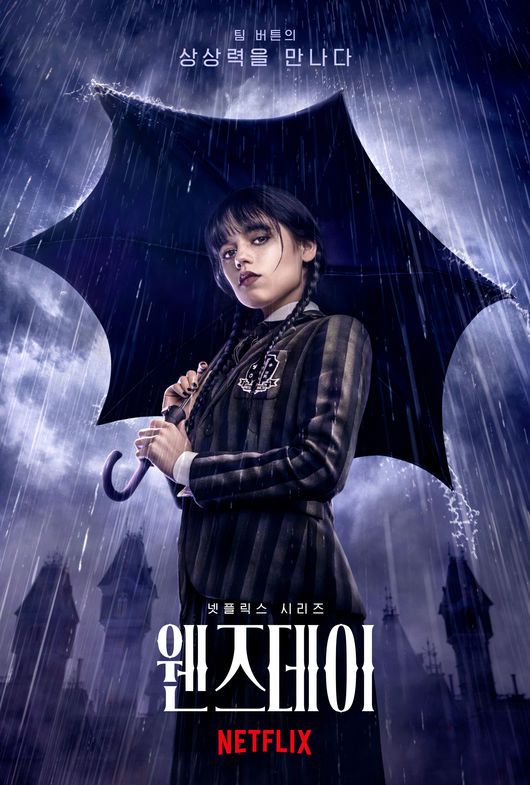 ‘웬즈데이’(극본 앨프리드 고프·마일스 밀러, 연출 팀 버튼·제임스 마샬·간디아 몬테이로)는 아담스 패밀리의 장녀 웬즈데이 아담스가 네버모어 아카데미에 입학해 연쇄 살인 사건을 조사하며 벌어지는 이야기를 담은 넷플릭스 시리즈.