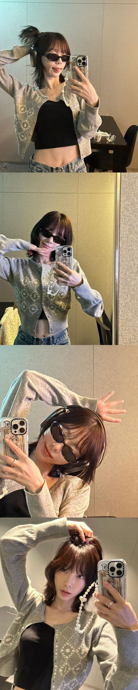 공개된 사진은 검은색 브라탑에 카디건을 걸친 태연이 거울 셀카를 찍고 있는 모습. 태연은 살이라곤 1도 없는 마른 몸매를 자랑하며 다양한 포즈를 취하고 있다. 태연의 인형같은 미모와 힙한 포즈에 보는 팬들의 시선이 집중됐다.