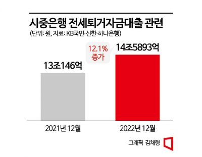 9일 금융권에 따르면 주요 시중은행(KB국민·신한·하나)의 지난해 말 전세퇴거자금 대출(전세보증금 반환 대출) 잔액은 14조5893억원으로 집계됐다. 이는 전년 말(13조146억원) 대비 12.1%가량 증가한 수치다.