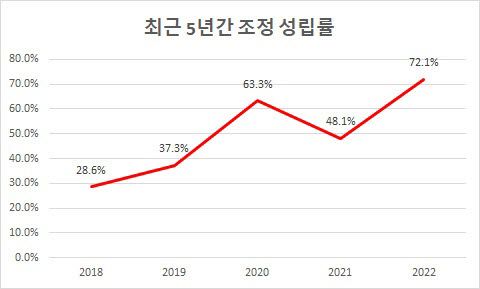지난해 한국저작권위원회 저작권 분쟁조정 성립률이 72.1%로 전년 대비 24% 상승한 것으로 나타났다.