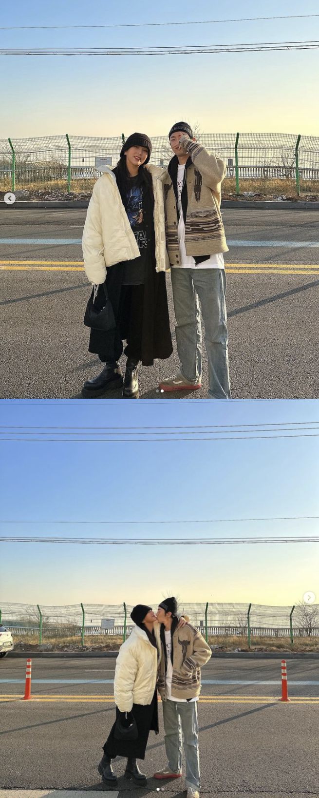11일 자이언트핑크는 자신의 SNS를 통해 "얼굴 맞대는 촉감이 조아서 맞대는거지 사랑과우정사이?? 연애때는 어딜가나 사진 찍었는데 지금은 짬내서 추억남기기"라는 멘트와 함께 사진을 게재했다.