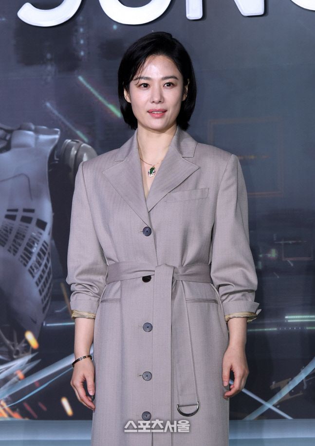 배우 김현주가 12일 서울 광진구 롯데시네마 건대입구점에서 진행된 넷플릭스 영화 ‘정이’ 제작보고회에서 취재진을 향해 포즈를 취하고 있다.