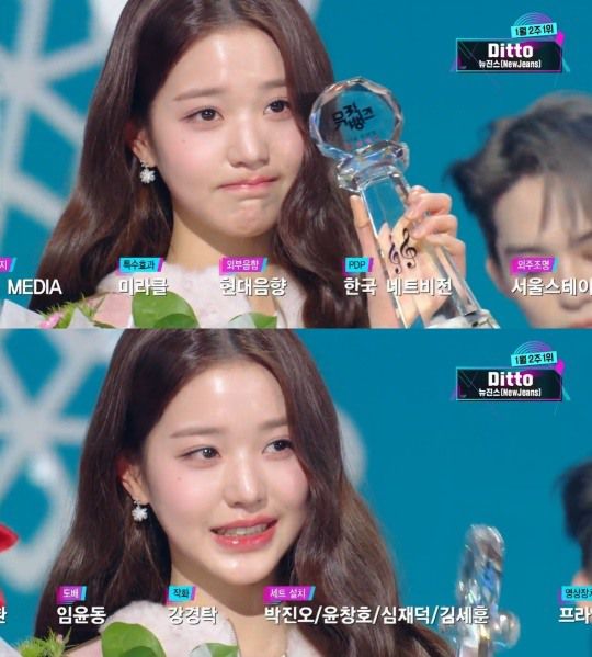 끝으로 장원영은 그를 향해 "지켜보겠다"며 "감사했다"고 마지막 인사를 전했다. 장원영은 이번 주 1위 곡인 뉴진스의 'Ditto'(디토)가 흘러나오는 가운데 끝내 눈시울을 붉히기도 했다.