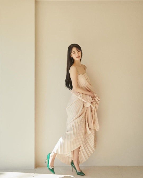 공개된 화보 속 임지연은 누드톤 드레스에 초록 구두를 신고 있는 모습이다. 특히 이 구두는 드라마 '더 글로리' 속에서 비밀을 품고 있는 만큼 섬뜩한 분위기를 한층 더하고 있다.