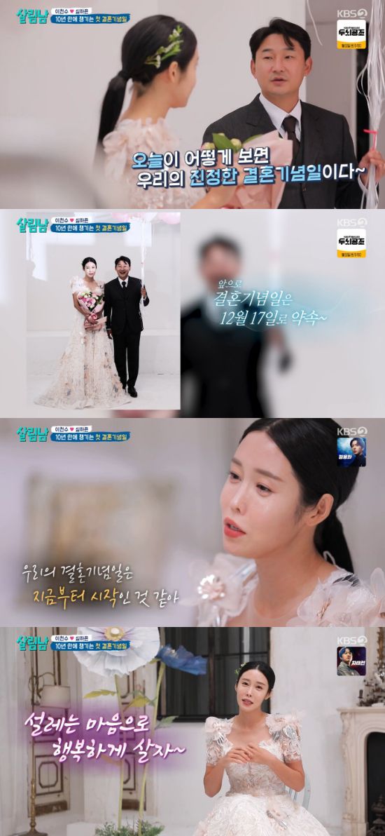 특히 심하은은 이천수가 쓴 편지를 읽었고, 편지에는 '하은아. 처음 쓰는 편지인 것 같다. 주은이가 10살인 건 알아도 우리가 결혼 10주년이 됐다고 생각은 못해봤던 것 같다. 네가 웨딩 화보 찍게 돼서 다시금 우리의 10년간의 결혼생활에 대해 생각해 보게 됐어. 내가 자주 욱하고 표현을 못하지만 날 닮은 주은이, 예쁜 널 닮은 둥이들을 낳아주고 건강하게 키워줘서 고마워. 우리 하은이 너한테 고마운 건 나를 위해 너의 모든 것을 포기 해줘서 그게 가장 고맙고 미안해'라며 적혀 있었다.