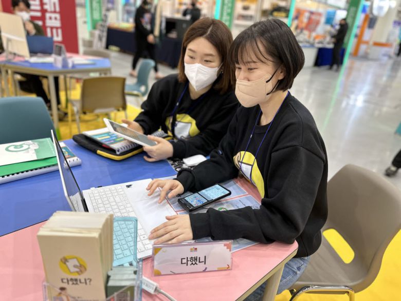 '다했니'를 개발한 최지원 서울 풍성초 교사는 에듀테크 기업과 함께 박람회에 참가했다. 2021년 9월 공개한 '다했니'는 이용자 입소문만으로 현재 교사 가입자가 2만3000여명에 이른다. 학생이 이용할 때는 인증번호만 있으면 되는 방식으로 약 19만명이 이용하는 것으로 추산된다.