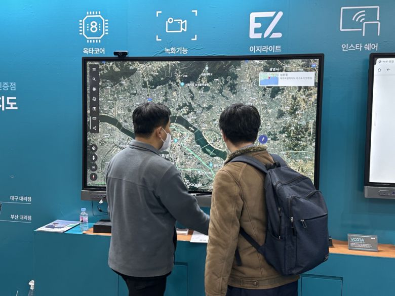 또 화상 협업 애플리케이션 지원해 안드로이드용 캠만 연결하면 손쉽게 비대면 원격수업도 구성할 수 있다. 최대 20곳 동시 터치와 판서 기능을 제공하며, 웹 기반 화면 공유 판서 기능도 갖췄다.
