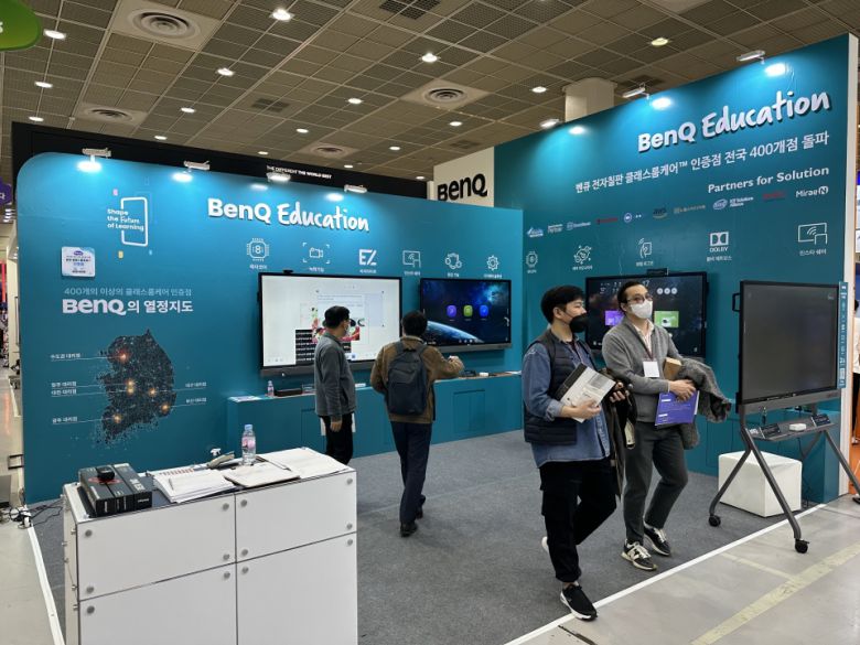 이번 교육박람회에서 벤큐는 4K UHD 전자칠판 RM03A 시리즈와 세계 최초 윈도우 11 탑재 프로젝터 EH620, 단초점 PC-프리 스마트 프로젝터 EW800ST 등 다양한 제품을 선보였다.