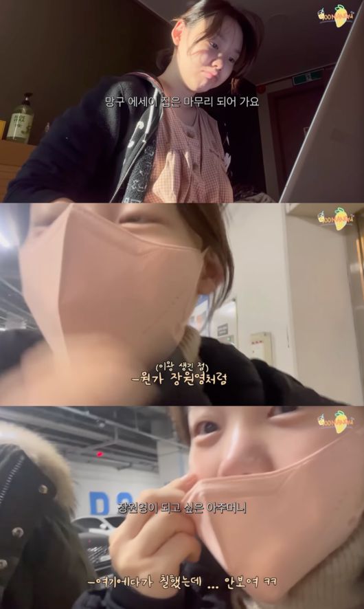 김수민은 “점이 생겼다. 뭔가 장원영처럼 나도 점 강조 메이크업 하고 싶어서 칠했는데 안보여”라고 했다.