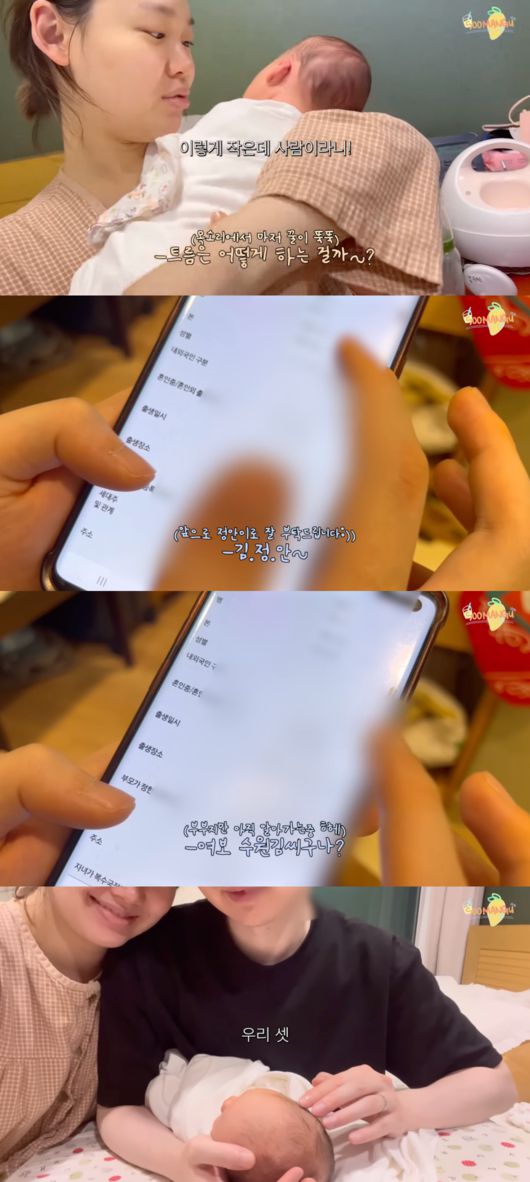 아들의 성은 김수민의 성을 따라 김정안이 됐다. 남편은 “여보 수원 김씨구나?”라고 했고 김수민은 작성을 완료한 출생신고서를 보고 “우와 신기하다”며 좋아했다.