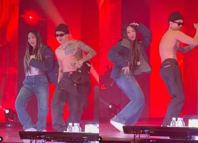 공개된 영상 속에서 이영지와 박재범의 노래 ‘몸매’에 맞춰 포인트 안무인 엉덩이를 흔드는 동작을 함께 추고 있다.