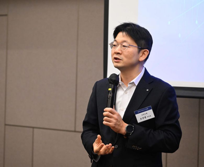 IT리더스포럼 2023년 1월 조찬 행사가 17일 서울 서초구 JW메리어트호텔에서 열렸다. 오건영 신한은행 부부장이 글로벌 금융 이슈 점검 환율·물가·금리를 중심으로를 주제로 발표하고 있다. 박지호기자 jihopress@etnews.com |