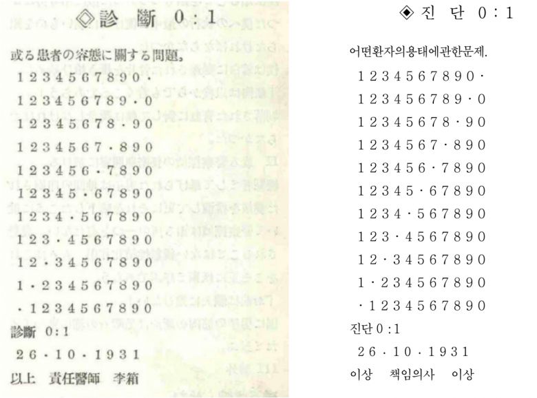 건축무한육면각체 - 진단 0 : 1의 일본어 원문(왼쪽) 동일작의 한국어 번역문(오른쪽).[GIST 제공]