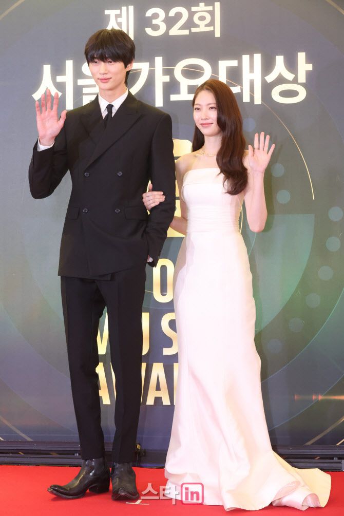 [이데일리 스타in 이영훈 기자] 배우 변우석과 공승연이 19일 오후 서울 송파구 올림픽공원 케이스포돔(KSPO DOME)에서 열린 ‘제32회 서울가요대상’에서 포즈를 취하고 있다.