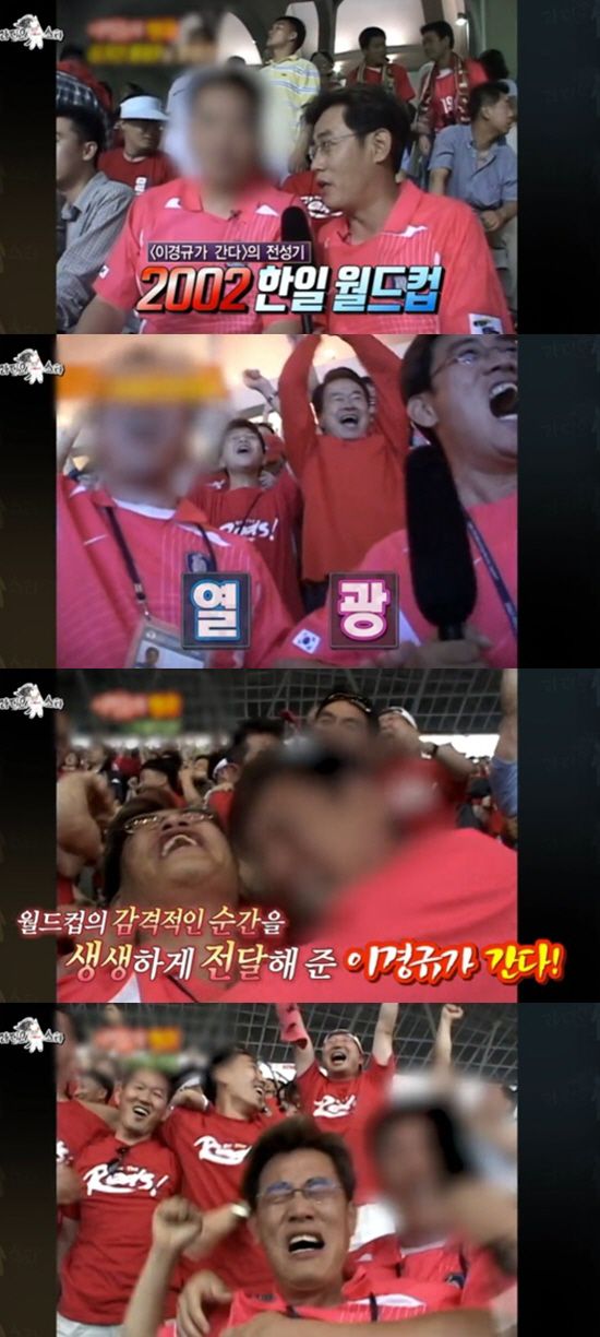 이어 과거 '이경규가 간다' 속 화면이 전파를 탔다. 2002 한일 월드컵에서 이경규가 열광하는 모습이 담겼는데 그의 옆에 있던 조형기는 모자이크 처리돼 이목을 집중시켰다.