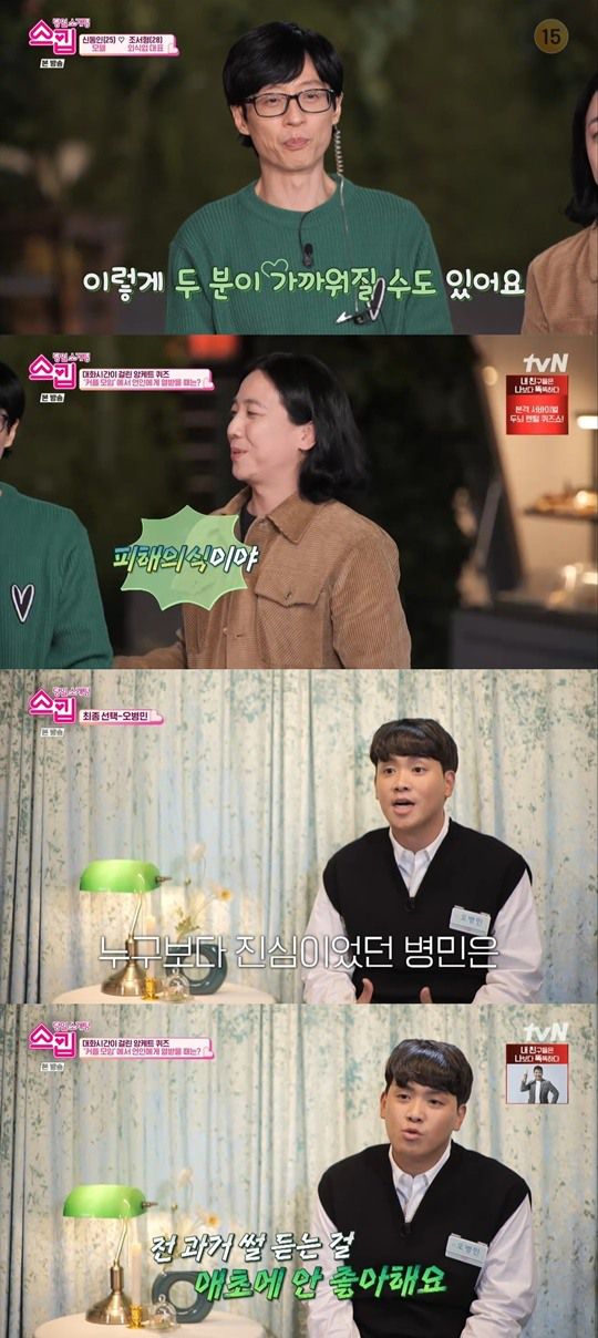 오병민은 최종선택을 스킵했다. 오병민은 "방송하러 왔나 생각하시겠지만 진지하게 임했다. 저는 이성을 만날 때 확실해야 한다"며 "마지막에 흔들렸던 제 모습에, 확신이 없다고 느꼈다"며 윤정원과 이어지려다가 최홍라에게 흔들렸던 마음을 고백했다.