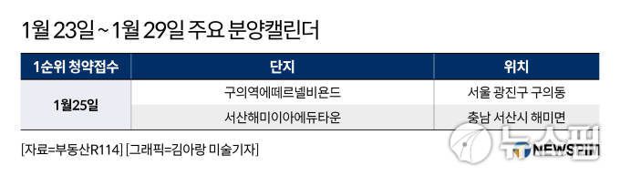 [서울=뉴스핌] 최현민 기자 = 1월 넷째주에는 '구의역에떼르넬비욘드' 등 전국 160가구 분양에 나선다.