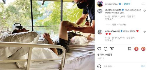 재활 사진 올린 '호크아이' 레너…히어로들 응원 릴레이 |