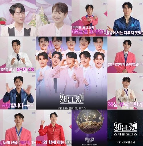 무엇보다 ‘불타는 트롯맨’은 설 연휴 첫날이었던 지난 21일 ‘국민 응원 투표’ 3차 TOP10인 황영웅-남승민-에녹-민수현-신성-손태진-박민수-전종혁-한강-이수호가 ‘네이버 나우’의 ‘라이브 토크쇼’에 출연, 시청자들과 실시간으로 소통하며 다양한 매력을 발산하며 본 방송에 대한 기대감을 끌어올렸다.