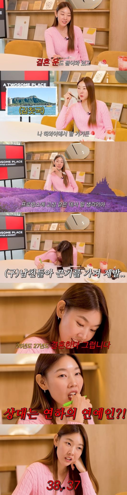 제작진은 "하와이에서 하면 비행기값 다 해주지 않냐"고 말했고, 한혜진은 "하와이 아니면 프로방스. '에밀리 인 파리스' 보니까 라벤더밭이 너무 예쁘더라. 프로방스 고성같은데서 할 생각이다"라고 들뜬 모습을 보였다.