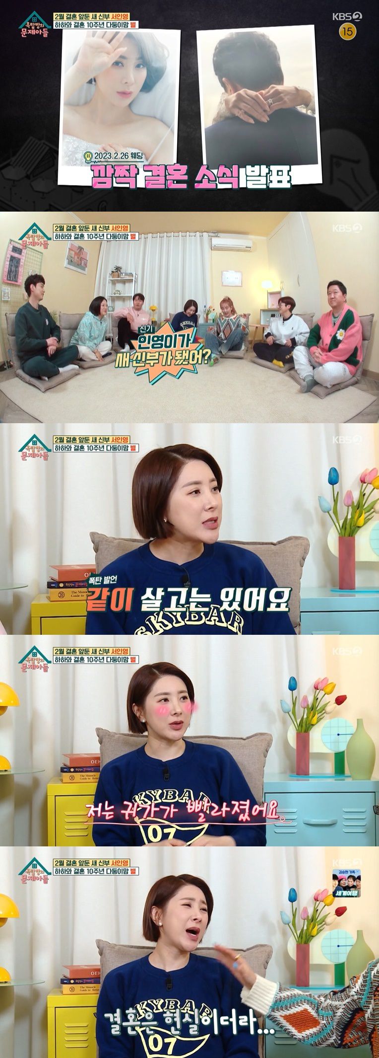 25일 오후 방송된 KBS 2TV 예능 프로그램 '옥탑방의 문제아들'에는 오는 2월 결혼을 앞둔 서인영이 게스트로 나왔다.