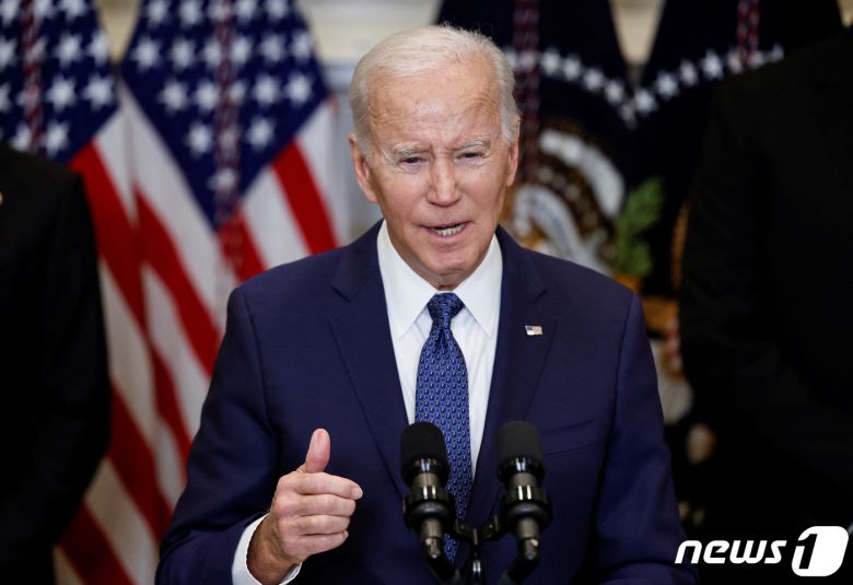 조 바이든 미국 대통령이 2023년 1월25일(현지시간) 백악관에서 '우크라이나에 대한 지속적인 지원'에 대한 연설을 하고 있다. ⓒ 로이터=뉴스1 ⓒ News1 김현 특파원