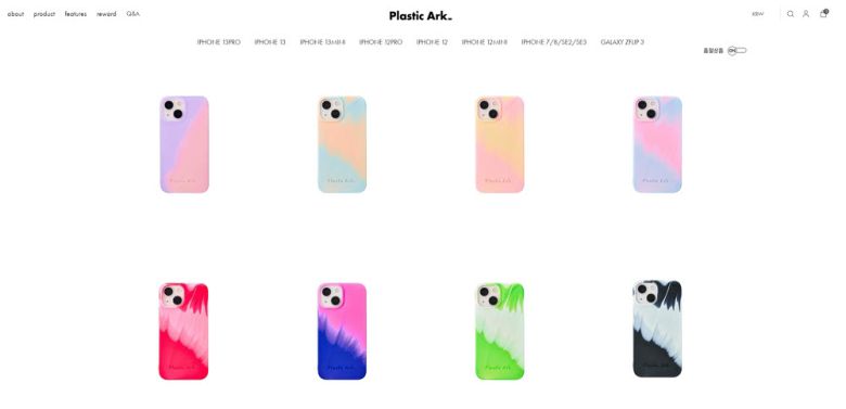 플라스틱아크는 폐플라스틱으로 제작한 폰 케이스를 판매하는 친환경 컬처 브랜드다. BTS 멤버 RM과 제이홉 등 유명 연예인 인스타그램에서 노출되며 입소문을 탔다.