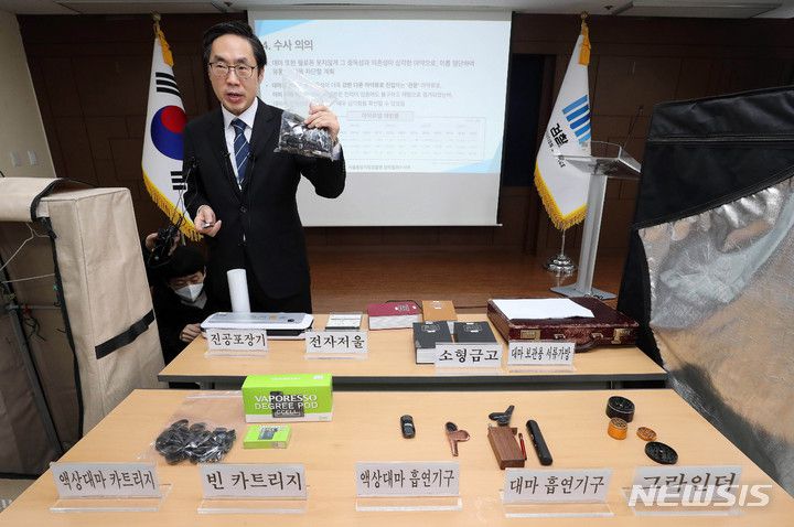 [서울=뉴시스] 권창회 기자 = 신준호 서울중앙지검 강력부장이 26일 서울 서초구 서울중앙지검에서 재벌가 3세와 연예인 등이 가담한 대마사범 집중수사 결과를 발표하고 있다.(공동취재사진) 2023.01.26. photo@newsis.com