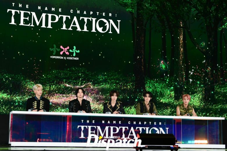 투모로우바이투게더가 26일 오후 서울 강남구 코엑스 인터콘티넨탈서울에서 미니 5집 ‘이름의 장: 템테이션’ 미디어 쇼케이스를 열었다.