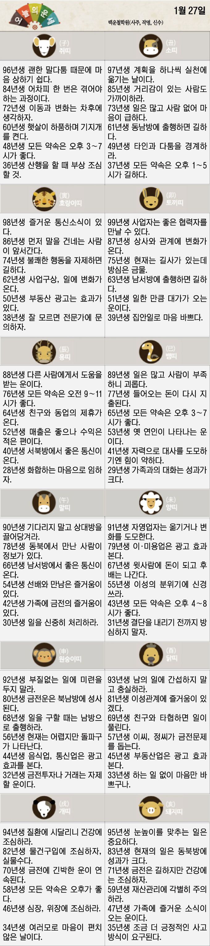 [재미로 보는 오늘의 운세] 1월 27일 (금요일)