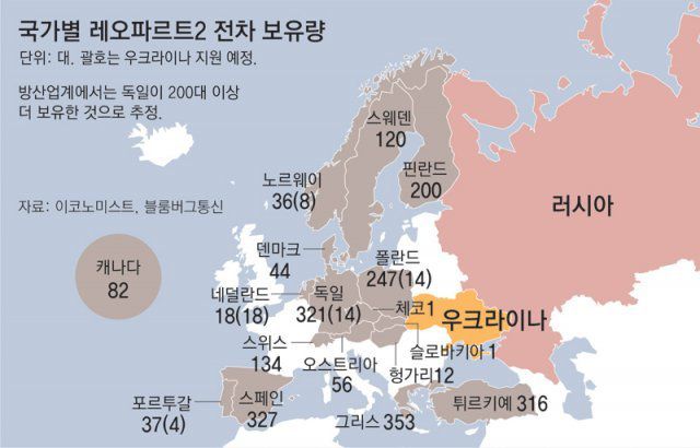 반면 레오파르트2는 디젤 엔진이어서 전장에서 활용하기가 편하다. 무게는 55t가량으로 70t에 이르는 M1 에이브럼스보다 가볍고, 속도도 비교적 빠르다. 얼음이 녹아 들판이 진흙탕으로 변할 봄철 우크라이나 전장에서 역량을 발휘하기에 상대적으로 더 적당하다. 연비도 낫다. 영국 경제주간지 이코노미스트는 “한 번 주유하면 주행거리가 레오파르트2는 550km, M1 에이브럼스는 426km”라고 보도했다.
