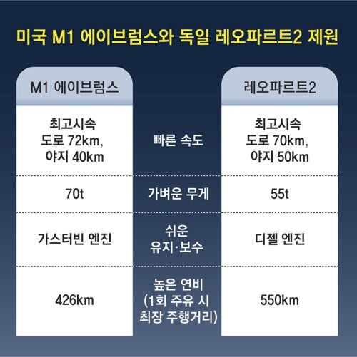 외신 분석을 종합하면 M1 에이브럼스는 첨단 장비를 갖췄고 화력도 레오파르트2에 비해 강하지만 특수 항공유를 써야 하는 가스터빈 엔진이라는 것이 치명적인 약점으로 꼽힌다. 조 바이든 미 대통령도 이날 백악관에서 M1 에이브럼스 31대 지원을 공식 발표하면서 “이 탱크는 운용과 유지 보수가 매우 복잡하기 때문에 전장에서 유지하는 데 필요한 부품과 장비를 우크라이나에 지원하겠다”고 말했다.