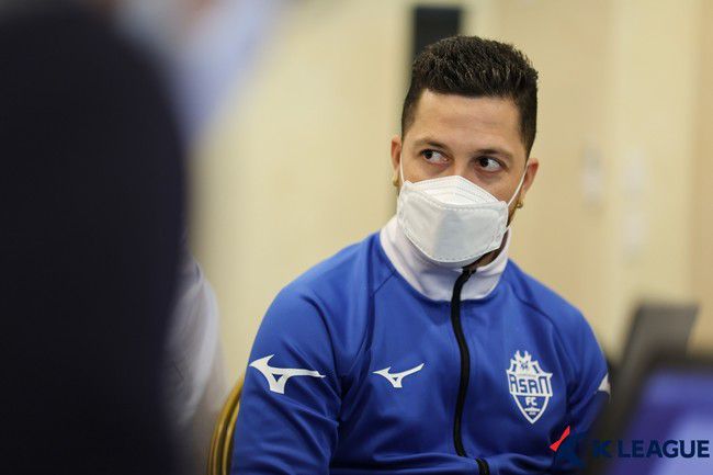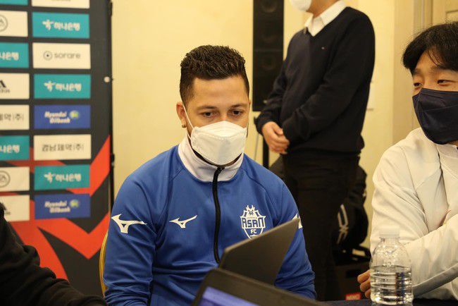 충남아산은 26일 오후 1시 제주도 서귀포시에 위치한 빠레브 호텔에서 2023 K리그 동계 전지훈련 미디어캠프 기자회견을 진행했다. 박동혁 감독 기자회견 후 두아르테가 참여해 충남아산에 합류한 소감을 이야기했다.