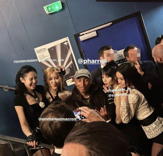 그런데 명품 브랜드 티파니의 알렉상드르 아르노 부사장이 촬영해 인스타그램에 올린 사진 한 장이 적지않은 이들의 눈길을 붙들었다. 블랙핑크 멤버들과 윌리엄스가 다정한 미소를 지으며 포즈를 취하는데 한 남성이 열심히 카메라에 그들의 모습을 담고 있다. 바로 에마뉘엘 마크롱 프랑스 대통령이었다. 아르노 부사장은 사진을 찍는 사람의 정수리 부분에 해시태그 ‘@emmanuelmacron’를 달아 마크롱 대통령임을 분명히 표시했다. 윌리엄스와 블랙핑크 멤버 각자에 대해서도 마찬가지로 해시태그를 달아줬다.