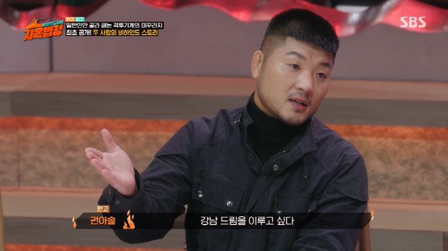 또한 촬영 당시 변호인, 의료진, 앰뷸런스도 있어 안전상의 문제도 없었다고. 명현만에게는 핸디캡으로 펀치만 쓸 수 있다는 룰도 적용했다고 밝혔다. 이승용은 “경기가 끝난 후에는 남자 대 남자로 사과했다. 정말 대결해보고 싶었고, 매운 맛 보여줘서 고맙다고 했다”라고 증언했다.