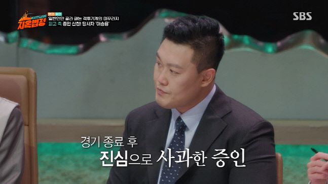 이승용도 증인으로 출석해 “저는 피해자가 아니다. 남자 대 남자로 붙어보고 싶었다. 제가 신청한 것”이라며 “제가 국민 빌런 이미지가 있다 보니 명현만의 체육관에서 대결을 못하고 안티 팬들을 피해 비공개적인 곳에서 진행한 것”이라고 흙바닥에서 스파링을 하게 된 경위를 설명했다.