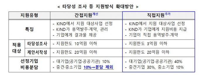 올해부터는 타당성 조사 등 소규모 지원을 확대한다. 중견·중소기업은 비용분담에서 제외해 중소기업에 대한 지원을 늘린다. 기존 한국해외인프라도시개발지원공사(KIND)가 타당성 조사에 대한 용역을 발주·관리하는 방식(간접지원)에서 사업 추진기업이 직접 용역을 발주·관리하는 방식(직접지원)을 추가한다.