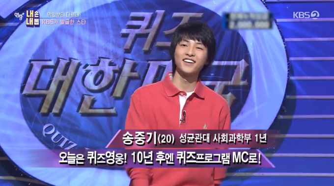송중기는 2006년 성균관대 사회과학부 1학년에 재학 중일 당시 KBS1 '퀴즈 대한민국'에 출연해 결승에 진출했다.