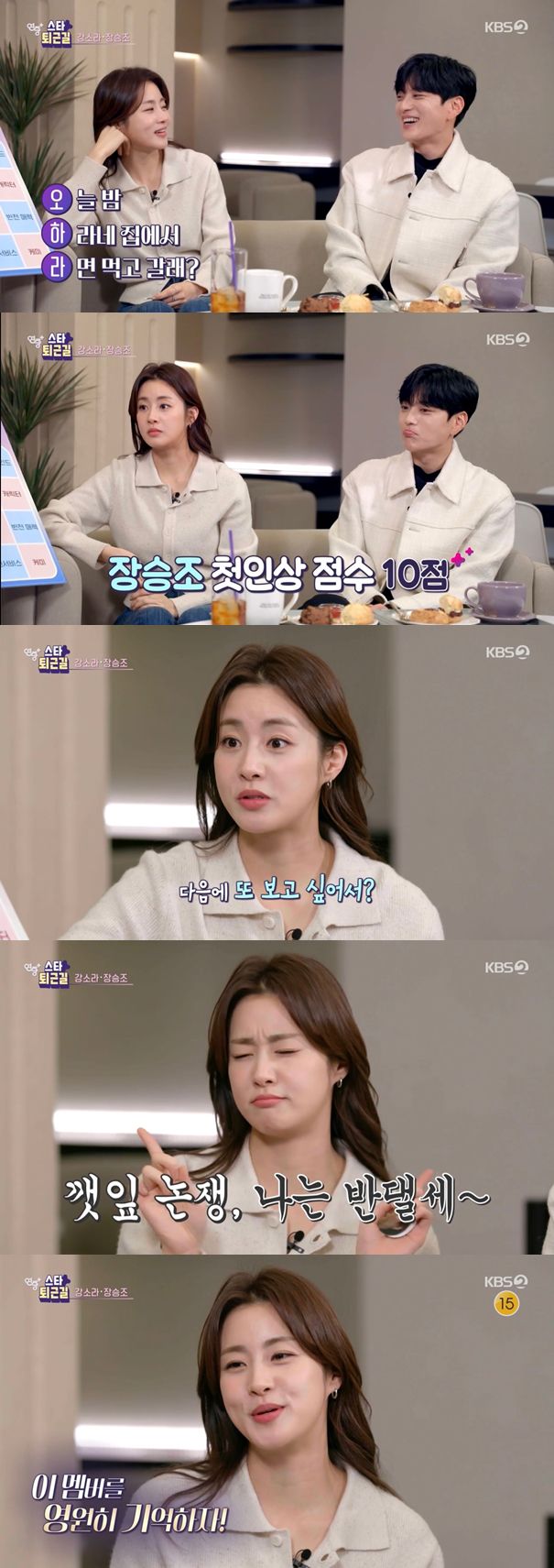 이윽고 최근 불거진 깻잎논쟁에 대해 강소라는 "내가 옆에 있는데 굳이. 나와의 관계도 떼어지는 거다. 그 친구가 교통사고로 팔이 아프거나 영유아가 아닌 이상에는"이라며 단호한 모습을 보였다.
