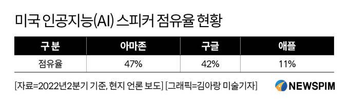 미국의 인공지능 스피커 시장점유율을 살펴보면 아마존의 '에코'는 47%, 구글의 '구글홈'은 42%, 애플의 '홈팟'은 11%를 차지하고 있다. 한국에서도 이동통신 3사와 네이버, 카카오 등이 모두 인공지능 스피커 시장에 뛰어들었다. 중국 기업 중에는 바이두와 알리바바가 글로벌 시장에서 의미 있는 점유율을 보이며 선전하고 있다.