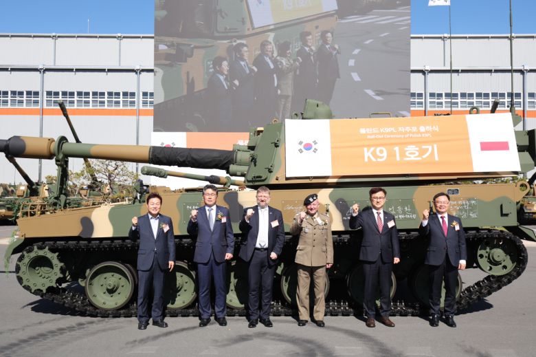지난해 10월 한화디펜스 창원 1사업장에서 야폴란드 수출 K9 자주포 초도물량 24문에 대한 출하식이 진행되고 있다. 이날 행사에는 폴란드 마치에이 야브원스키(Maciej Jablonski) 육군사령관, 피오트르 오스타셰프스키(Piotr Ostaszewski) 주한 폴란드 대사와 엄동환 방위사업청장, 박완수 경남도지사, 홍남표 창원시장, 원종대 국방부 전력정책관, 엄용진 육군군수사령관을 비롯한 유관 기관 주요인사 등 150여명이 참석했다. [한화에어로스페이스 제공]